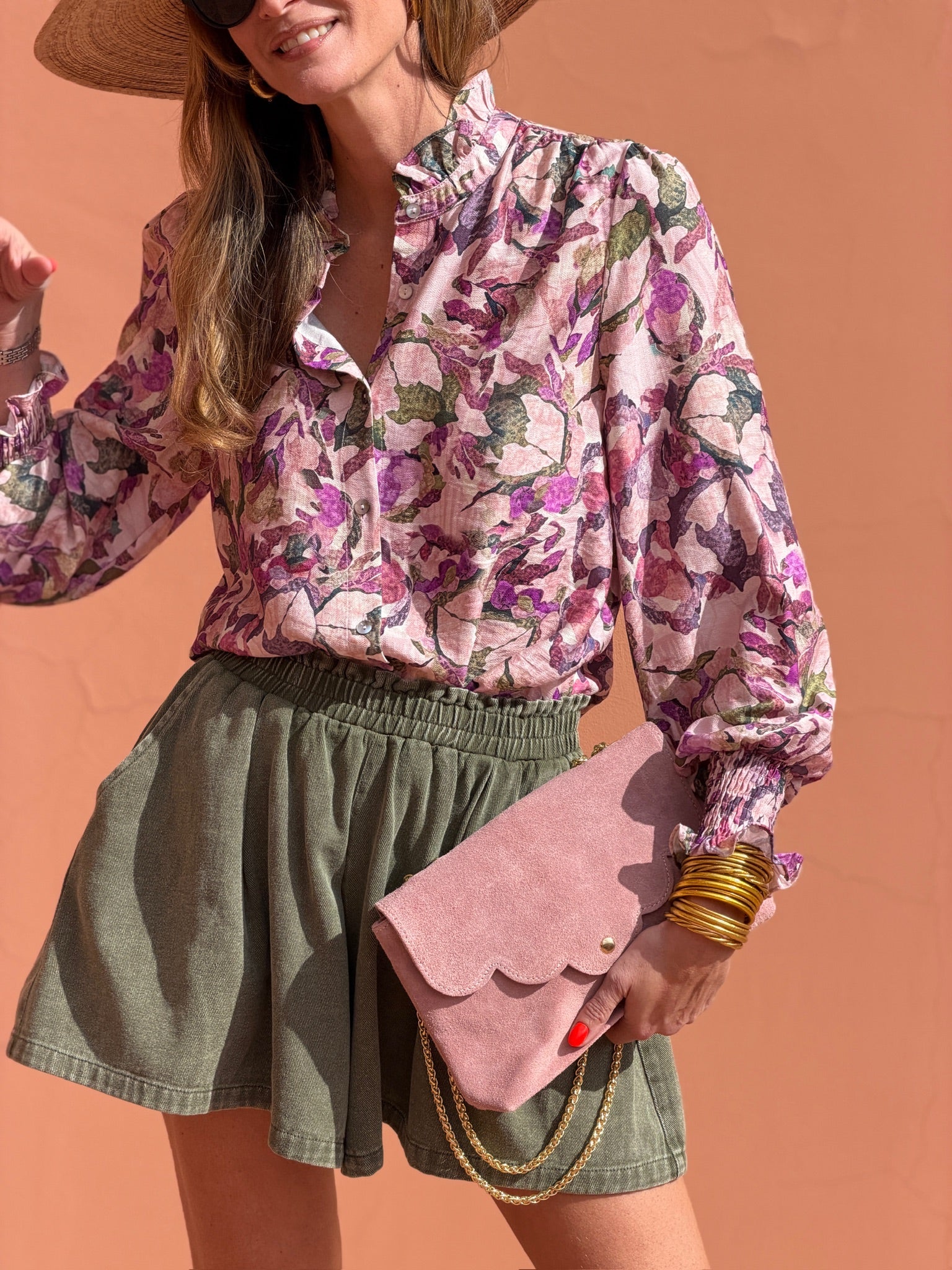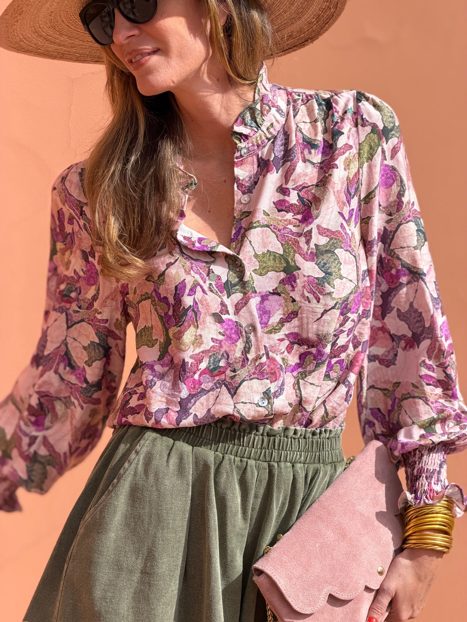 This is the perfect shirt for the start of spring and summer. Its floral print in shades of mauve will give a chic and sunny look to all your outfits.