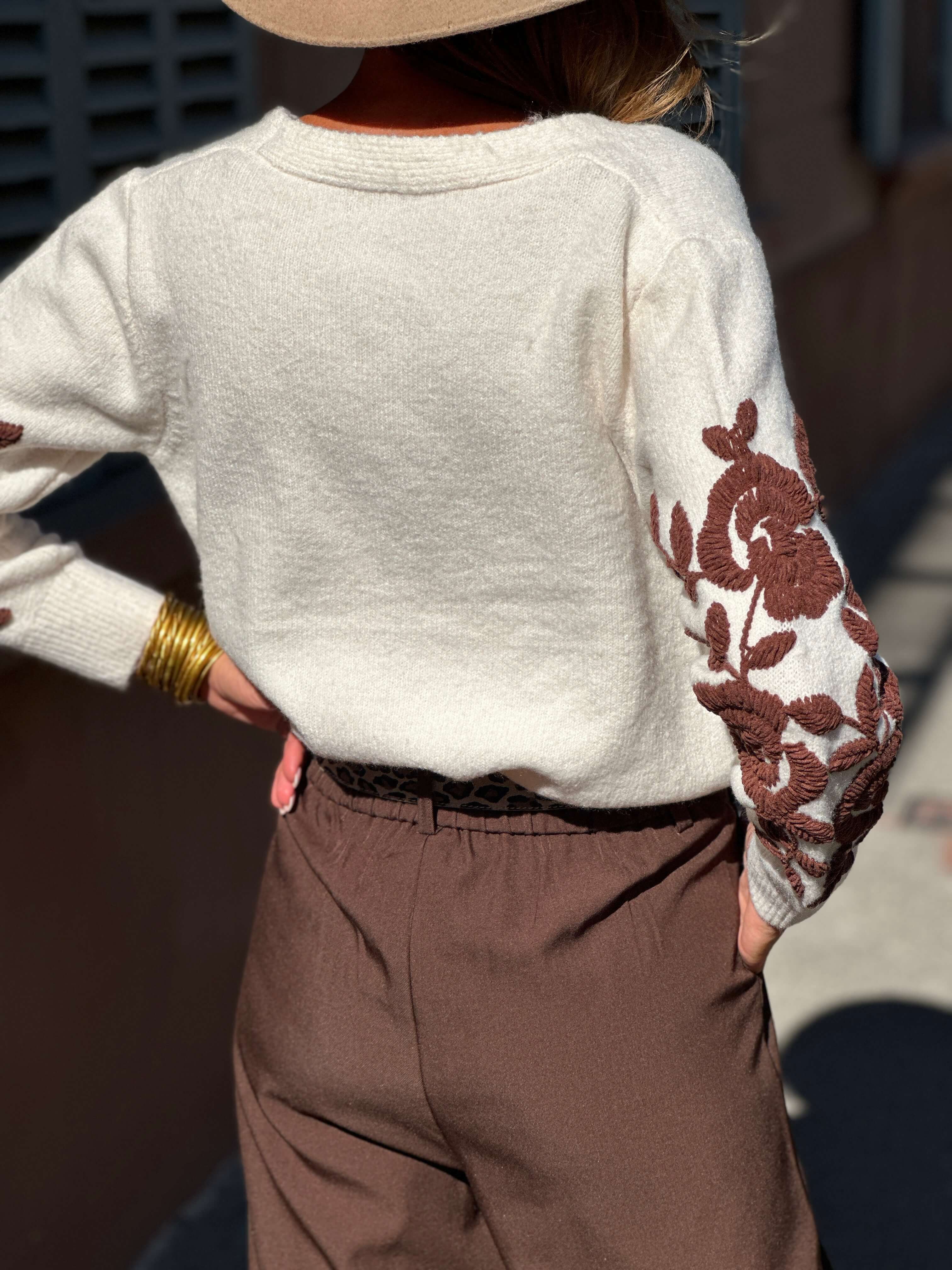 This creation is both a feel-good sweater, comfortable to wear, and beautiful to look at. This cardigan allows you to feel good while also being sophisticated and beautiful.