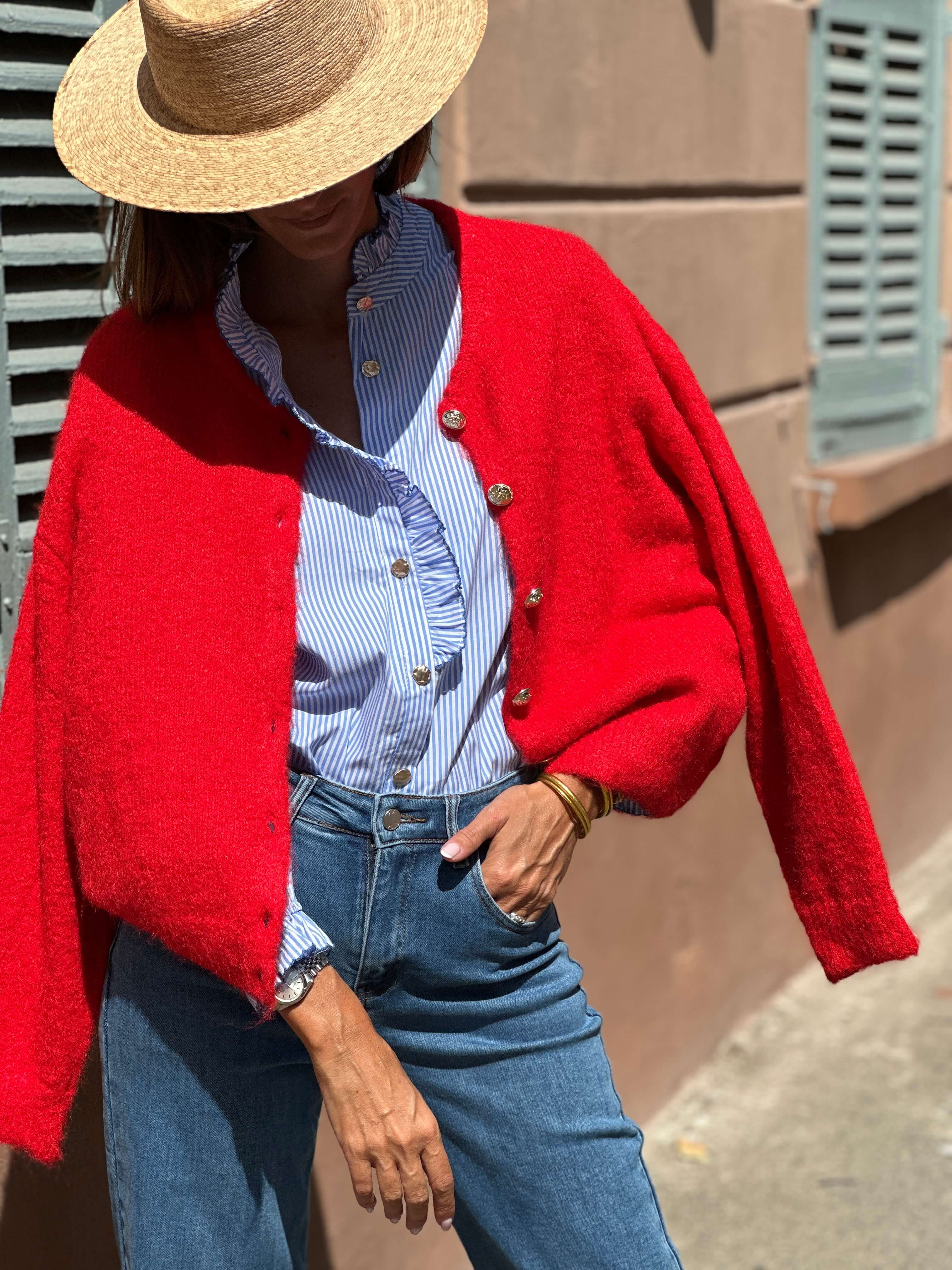 To be worn alone or open over a blouse, with jeans or a high-waisted skirt: Mia It adapts to all your everyday looks ♡