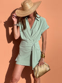 Versatile, it's equally suited to a workday or an elegant evening out. Its fluid and structured draping It flatters the figure, while its wrap neckline adds a feminine and refined touch.
