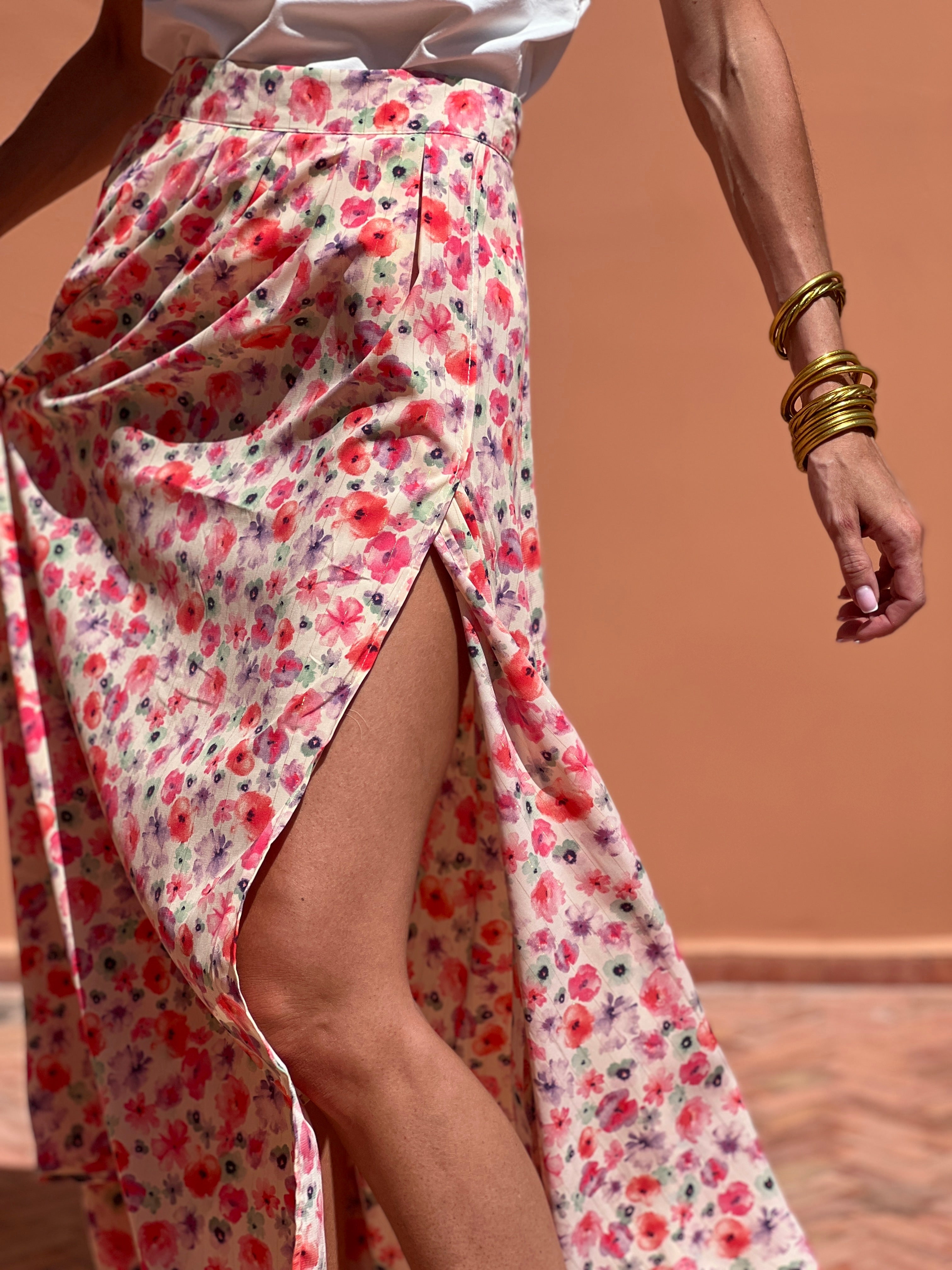A an essential classic of the house SiamoiseOur slit skirt returns every spring-summer in fresh and feminine prints