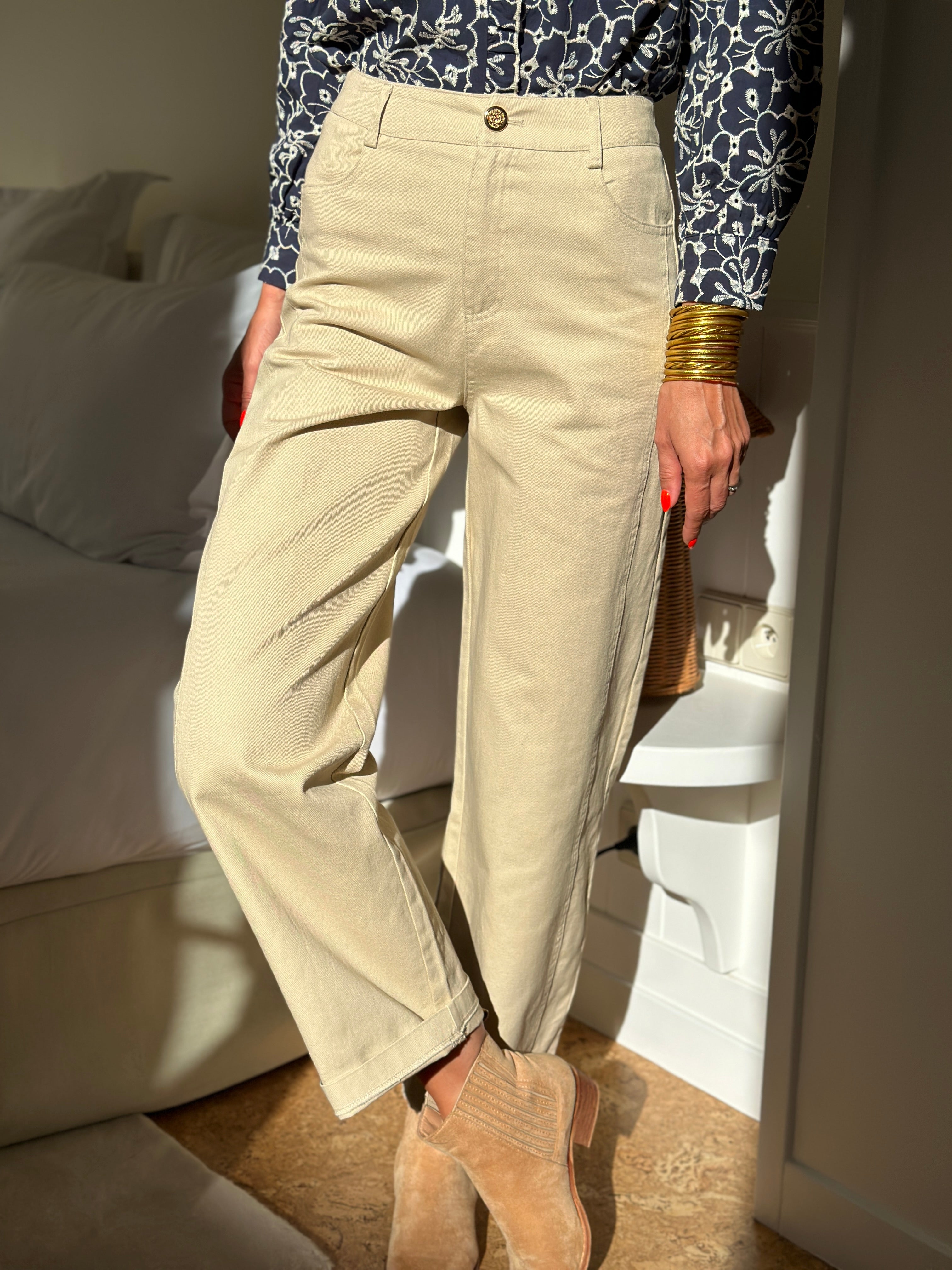 A new favorite for the start of the school year, Hilda These are cotton denim trousers with a perfect drape. They combine comfort and style with a Straight cut, slightly loosefor a structured and natural silhouette.
