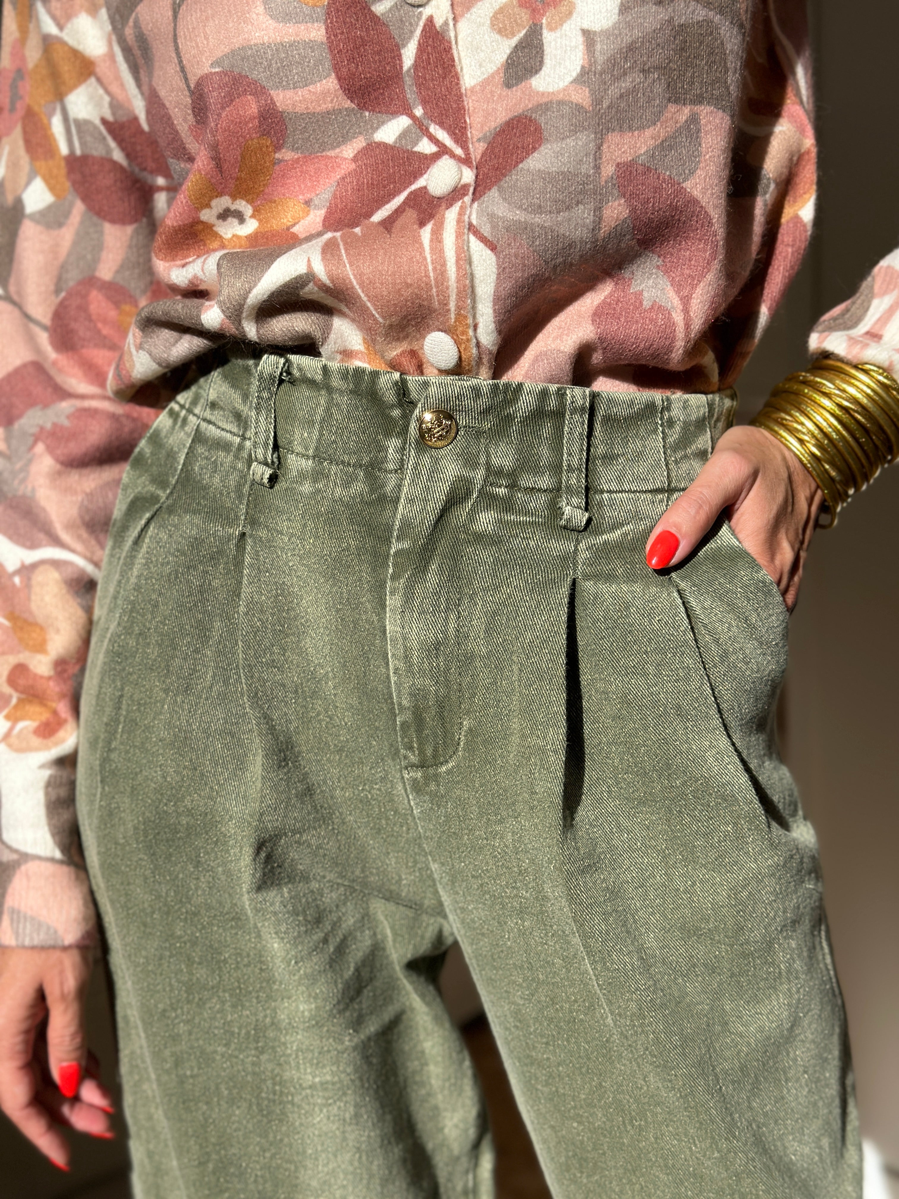 Livia combines perfectly comfort and elegance thanks to its slightly faded, soft cotton canvas and its Loose, slightly structured cut.