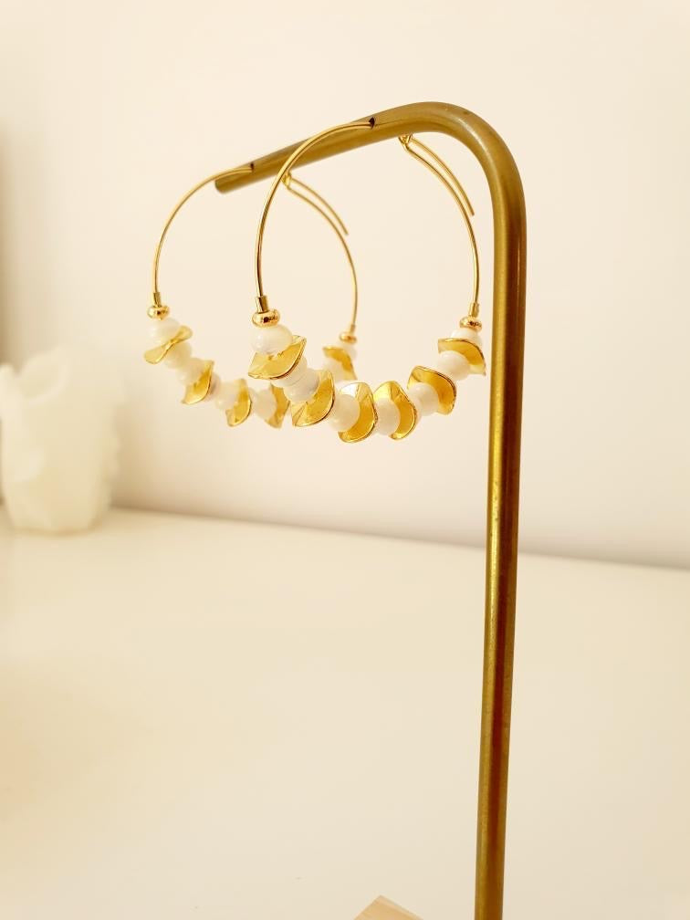 Nos magnifiques boucles d'oreille MADAMA en laiton plaqué à l'or fin et nacre.
