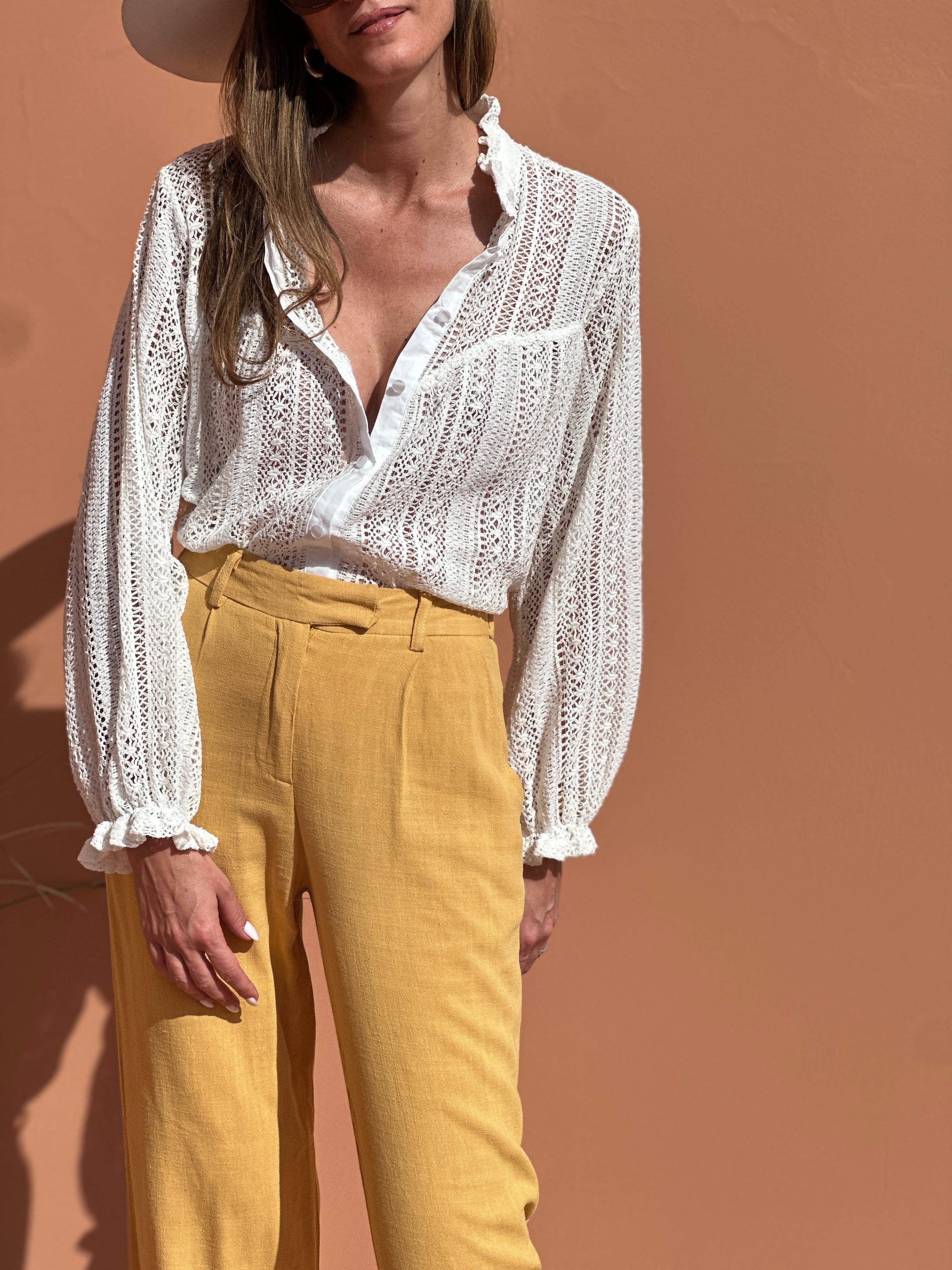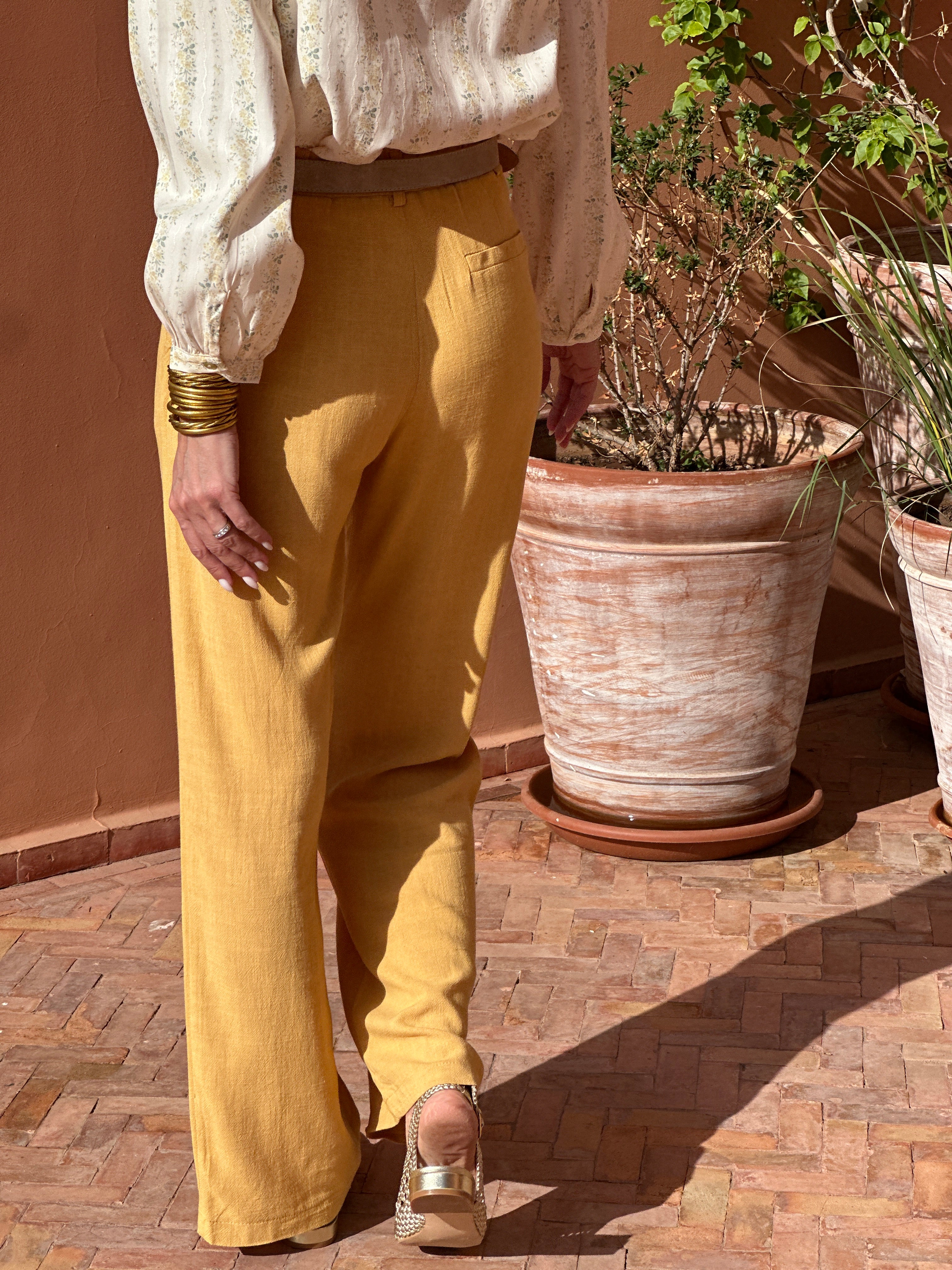On aime ce grand classique en lin pour sa taille haute et sa coupe flatteuse légèrement évasée au niveau des cuisses.