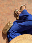 Comme un ciel d’été au crépuscule, cette robe longue bleu majorelle capte la lumière et sublime la silhouette avec douceur. Fluide, aérienne et délicatement structurée, elle incarne une féminité libre et lumineuse.